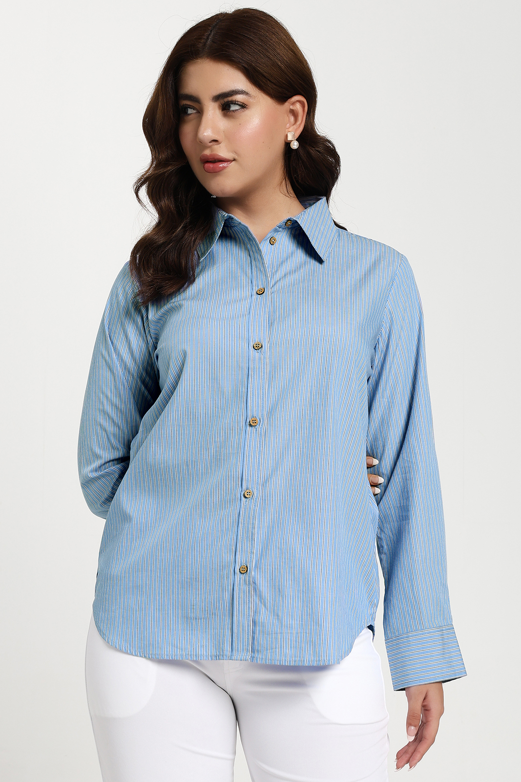 Long Sleeve, pure cotton Collared Button up Front Shirt . Cotton shirt for summers.